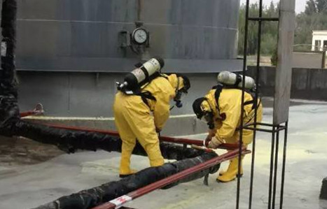 2015年10月6日下午,在德州虹橋染料化工有限公司生產(chǎn)廠區(qū)原料儲罐區(qū)四周的要道上拉起了警戒線。只見四條白色的水柱像銀龍一樣撲向一個苯儲罐,兩個全副武裝的?;茸o人員從事故灌區(qū)抬出一名受傷的搶修人員。在公司專職醫(yī)療救護隊人員協(xié)助下,迅速把受傷人員抬到安全地段進行必要的搶救。醫(yī)護人員對該受傷職工進行了苯清洗等一系列救護措施......原來這是德州虹橋染料化工有限公司生產(chǎn)部在公司生產(chǎn)廠區(qū)組織的又一次消防大演練。這次大演練以硝基苯車間職工為主,堿性玫瑰精車間 元青苯胺黑車間 間硝基苯磺酸鈉 防染鹽車間 翠蘭車間 水處理車間的精兵強將和虹橋染料公司的各后勤相關(guān)部門協(xié)助下進行的。演練結(jié)束時,玫瑰精車間的曲安全員說這種演練以后還要常態(tài)化,只有居安思危,我們的職工才能在危險真正降臨時,果敢,迅速的應(yīng)對事故,把危險降到最小,甚至萌芽狀態(tài);才能為公司的財產(chǎn)安全,職工的生命安全保駕護航。